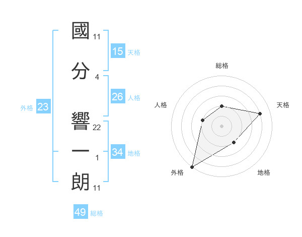 國分 響一朗さんの総格は49画の2点!