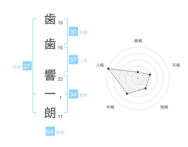 歯歯 響一朗さんの人格は37画の5点!