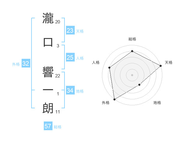 瀧口 響一朗さんを姓名の画数から五運を鑑定