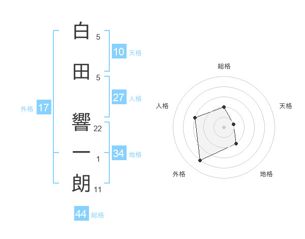 白田 響一朗さんを姓名の画数から五運を鑑定