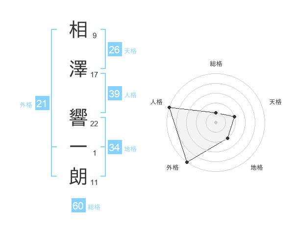 相澤 響一朗さんを姓名の画数から五運を鑑定