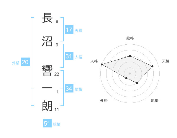 長沼 響一朗さんを姓名の画数から五運を鑑定