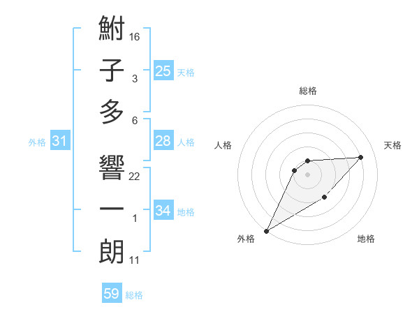 鮒子多 響一朗さんを姓名の画数から五運を鑑定