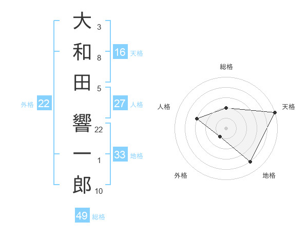 大和田 響一郎さんの総格は49画の2点!