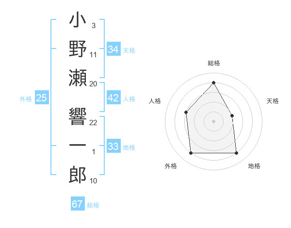 小野瀬 響一郎さんを姓名の画数から五運を鑑定