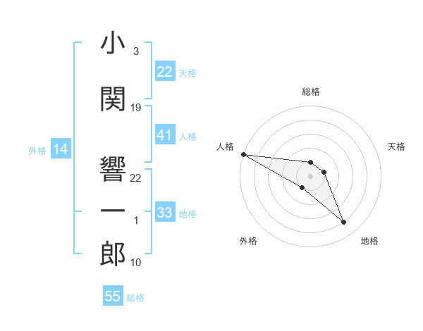 小関 響一郎さんを姓名の画数から五運を鑑定