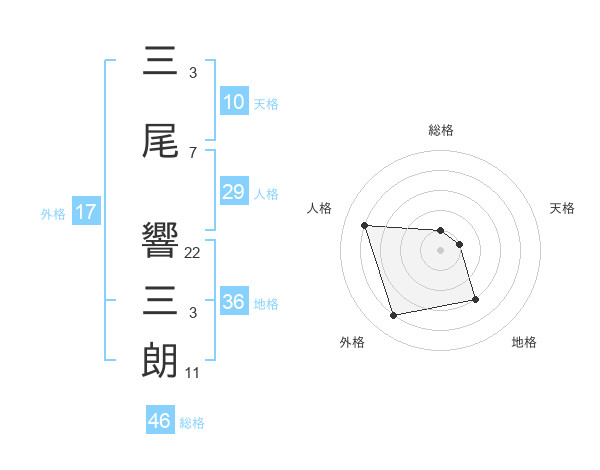 三尾 響三朗さんを姓名の画数から五運を鑑定