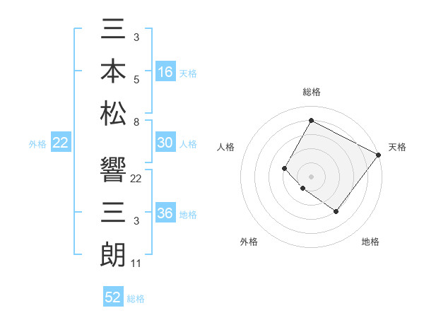三本松 響三朗さんを姓名の画数から五運を鑑定