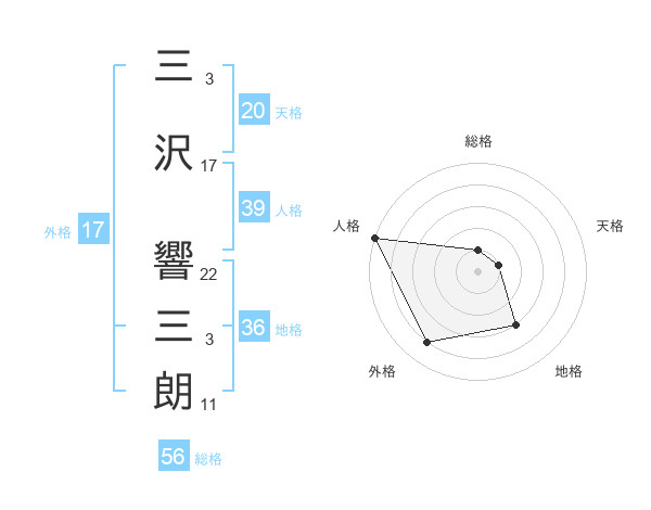 三沢 響三朗さんを姓名の画数から五運を鑑定