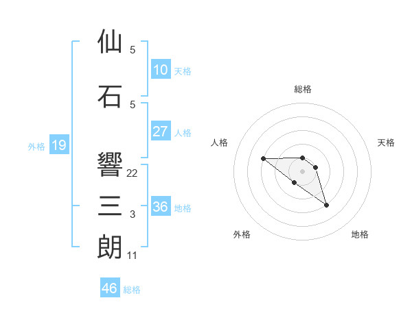 仙石 響三朗さんの総格は46画の1点!