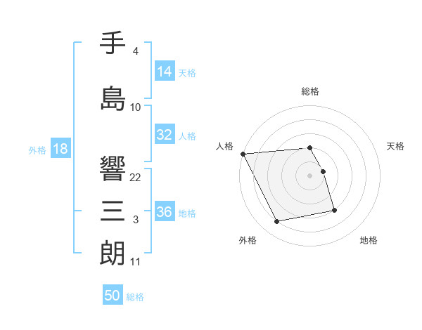 手島 響三朗さんの総格は50画の2点!