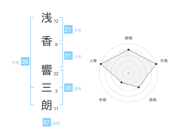 浅香 響三朗さんの総格は57画の4点!