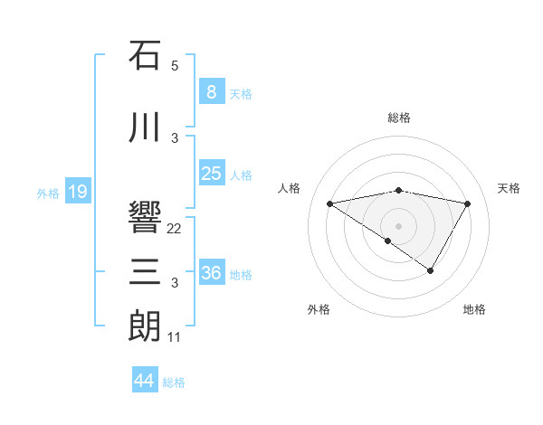 石川 響三朗さんの総格は44画の2点