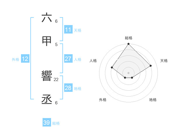 六甲 響丞さんを姓名の画数から五運を鑑定