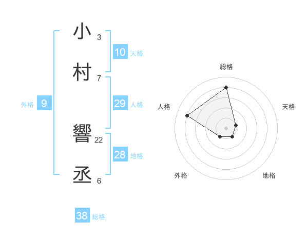 小村 響丞さんの総格は38画の4点!