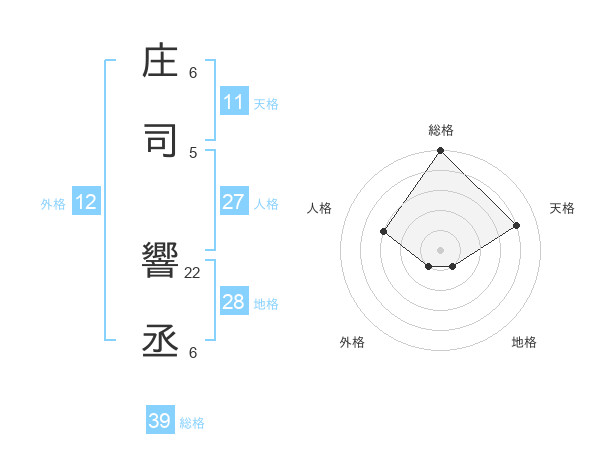 庄司 響丞さんの総格は39画の5点!