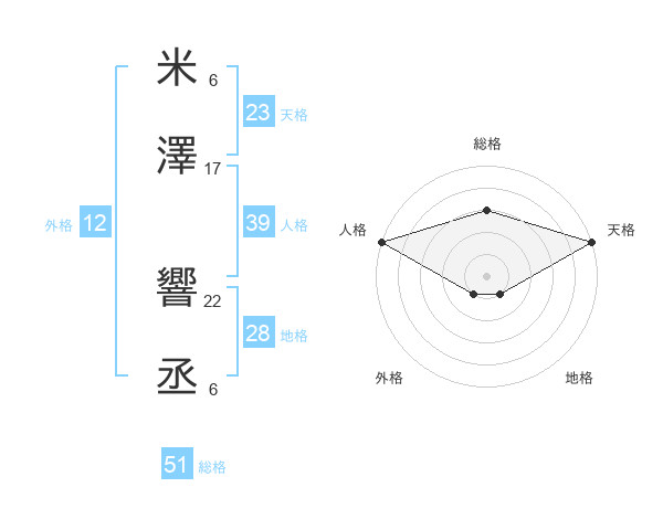 米澤 響丞さんを姓名の画数から五運を鑑定