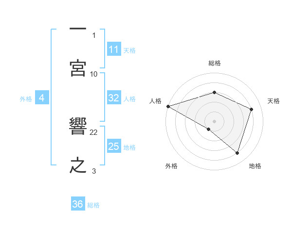 一宮 響之さんを姓名の画数から五運を鑑定