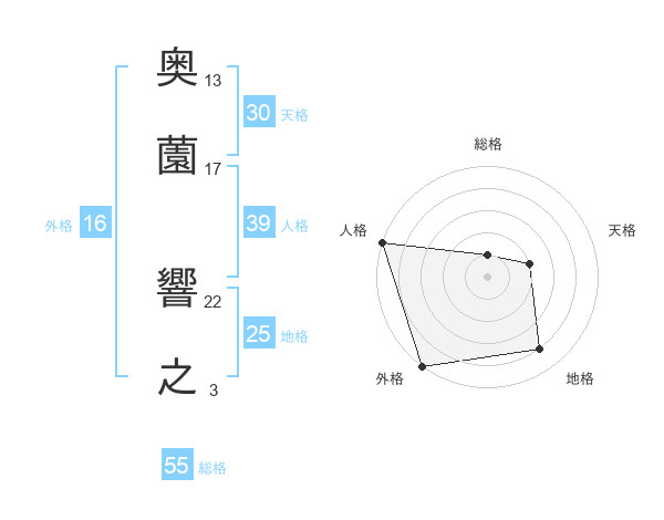 奥薗 響之さんの総格は55画の1点!