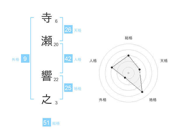 寺瀬 響之さんの総格は51画の3点!