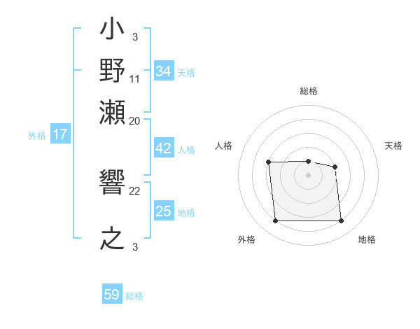 小野瀬 響之さんを姓名の画数から五運を鑑定