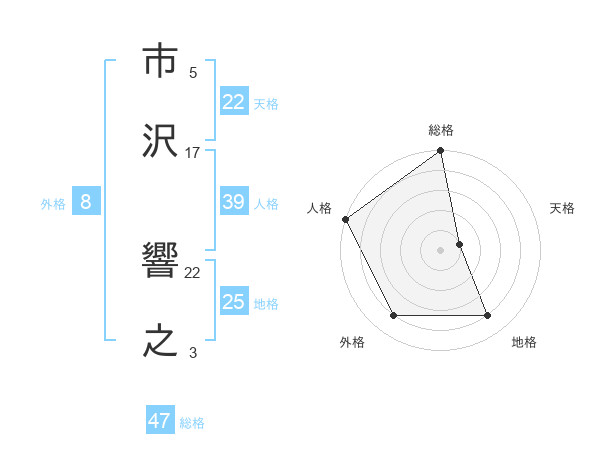市沢 響之さんの総格は47画の5点!