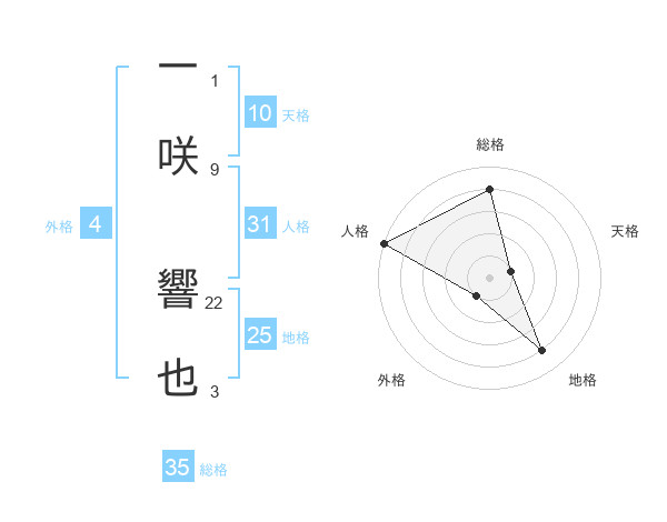 一咲 響也さんの総格は35画の4点!