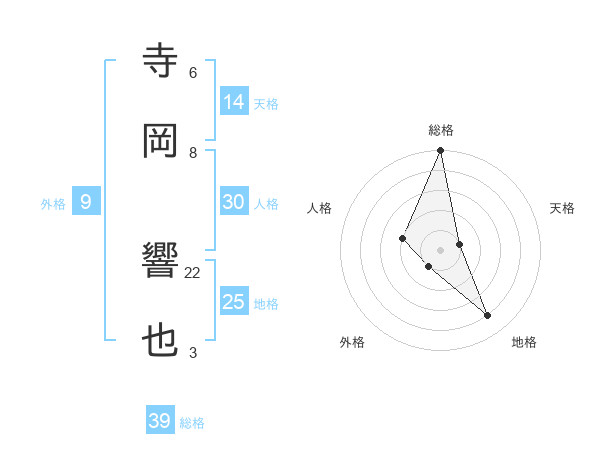 寺岡 響也さんを姓名の画数から五運を鑑定