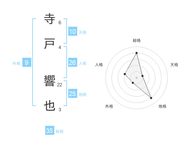寺戸 響也さんの地格は25画の4点!