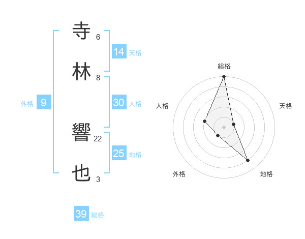 寺林 響也さんの総格は39画の5点!