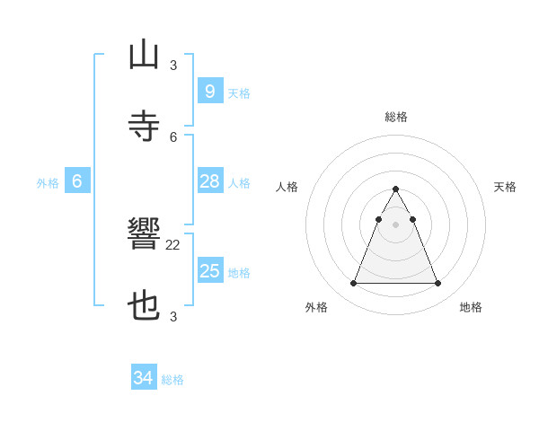 山寺 響也さんの総格は34画の2点!