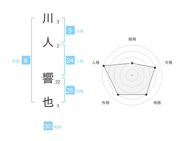 川人 響也さんの総格は30画の2点!