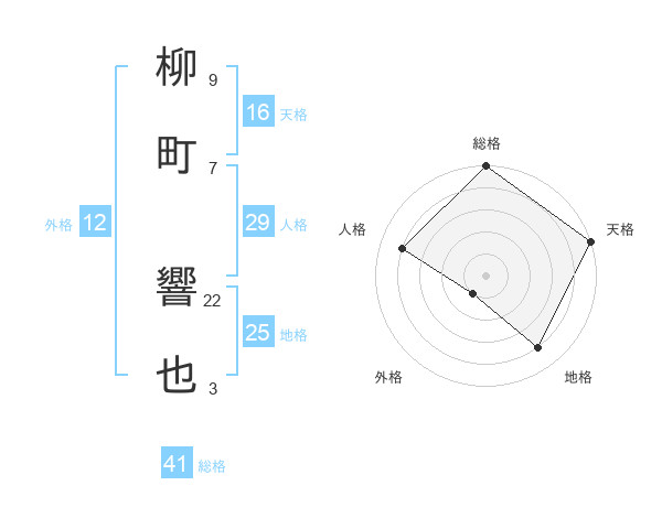 柳町 響也さんの天格は16画の5点!