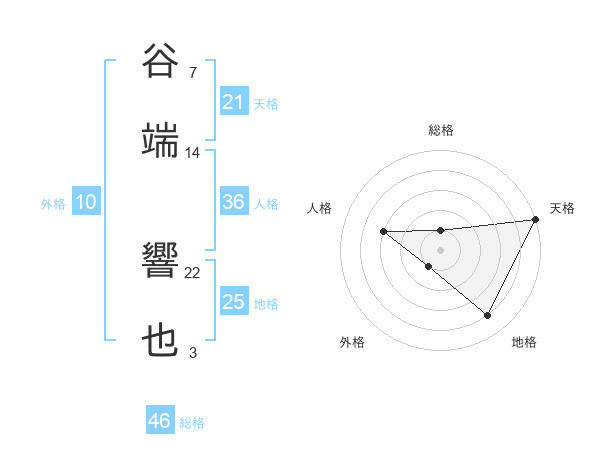 谷端 響也さんの天格は21画の5点!