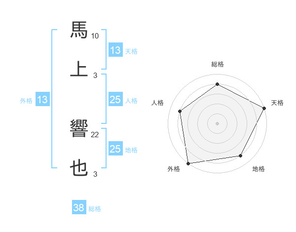 馬上 響也さんの総格は38画の4点!