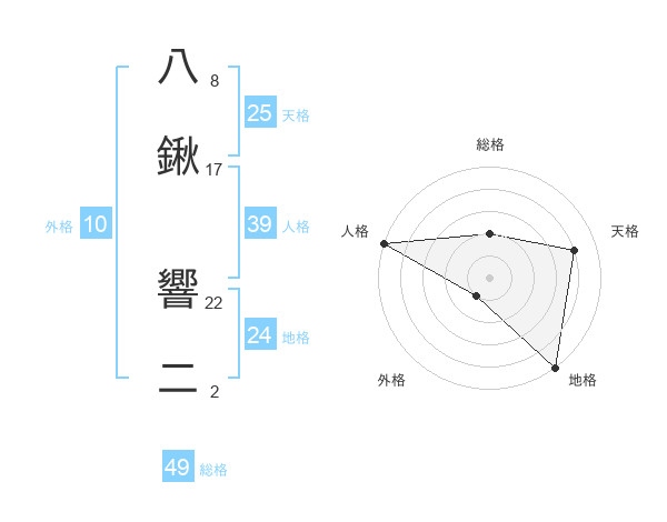八鍬 響二さんの天格は25画の4点!