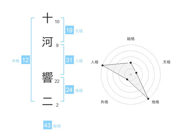 十河 響二さんの総格は43画の2点!
