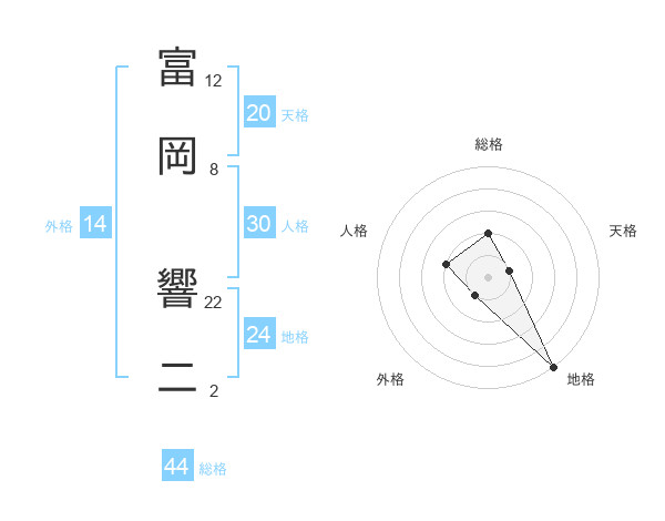 富岡 響二さんの総格は44画の2点!