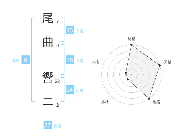 尾曲 響二さんの総格は37画の5点!