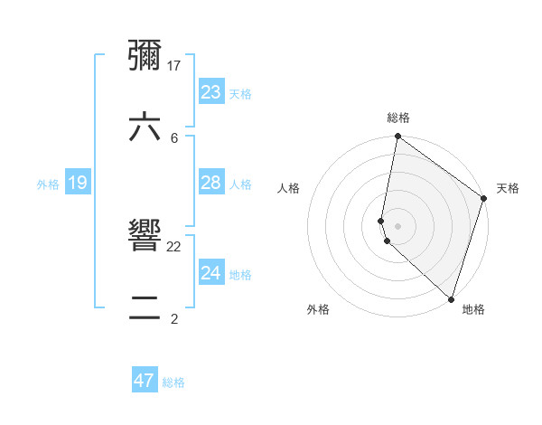 彌六 響二さんの総格は47画の5点!