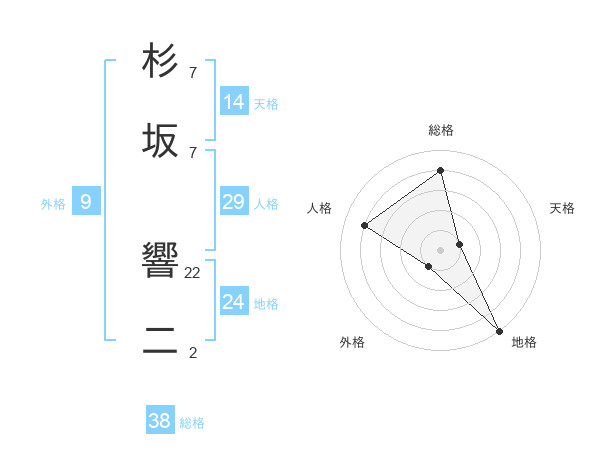 杉坂 響二さんを姓名の画数から五運を鑑定