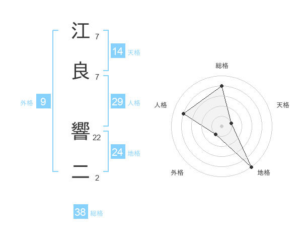 江良 響二さんの総格は38画の4点!