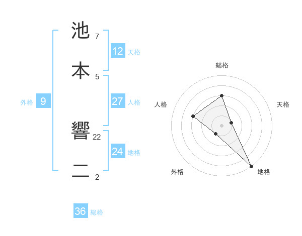 池本 響二さんの総格は36画の3点!