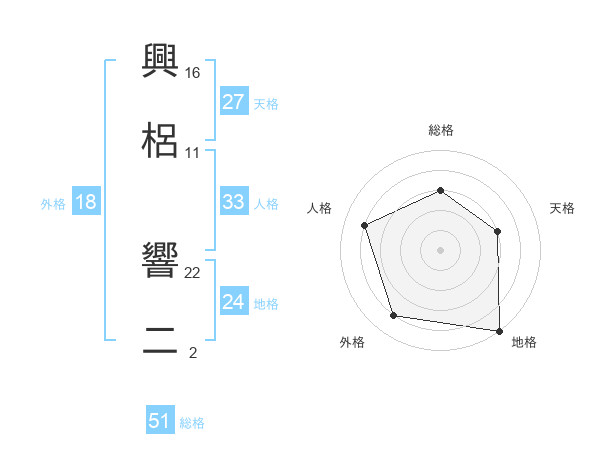 興梠 響二さんの総格は51画の3点!