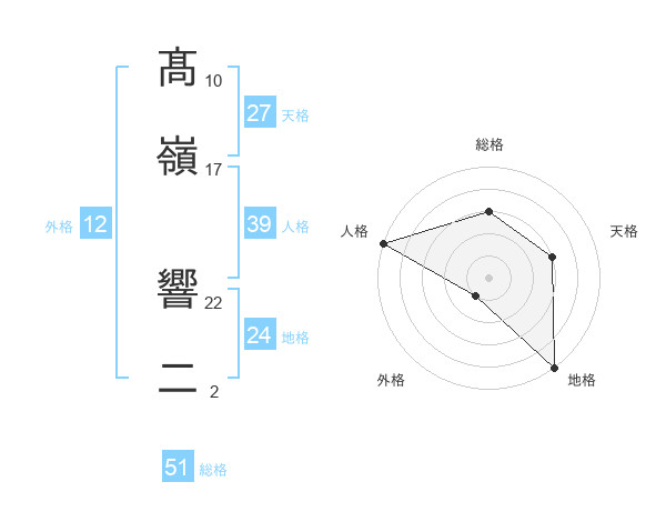 髙嶺 響二さんを姓名の画数から五運を鑑定