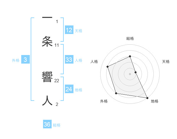 一条 響人さんの総格は36画の3点!