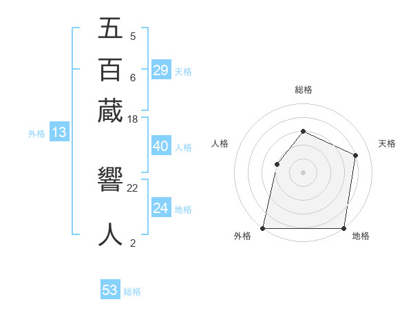 五百蔵 響人さんの総格は53画の3点!