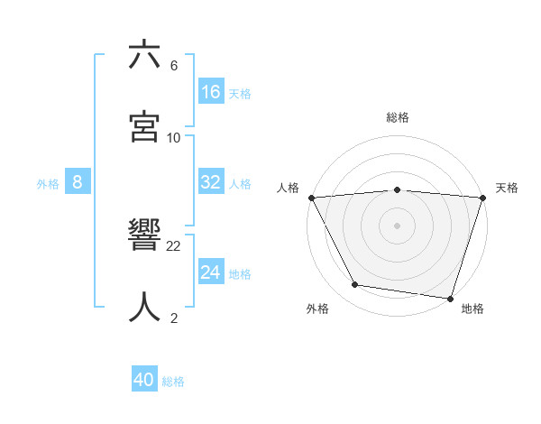 六宮 響人さんの総格は40画の2点!
