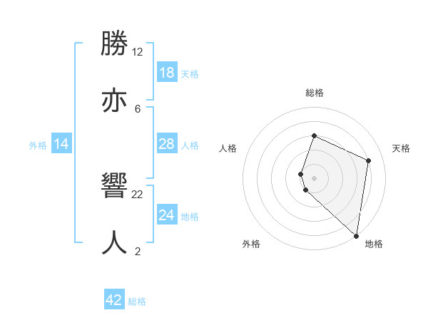 勝亦 響人さんの総格は42画の3点!