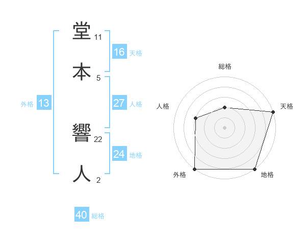 堂本 響人さんの総格は40画の2点!